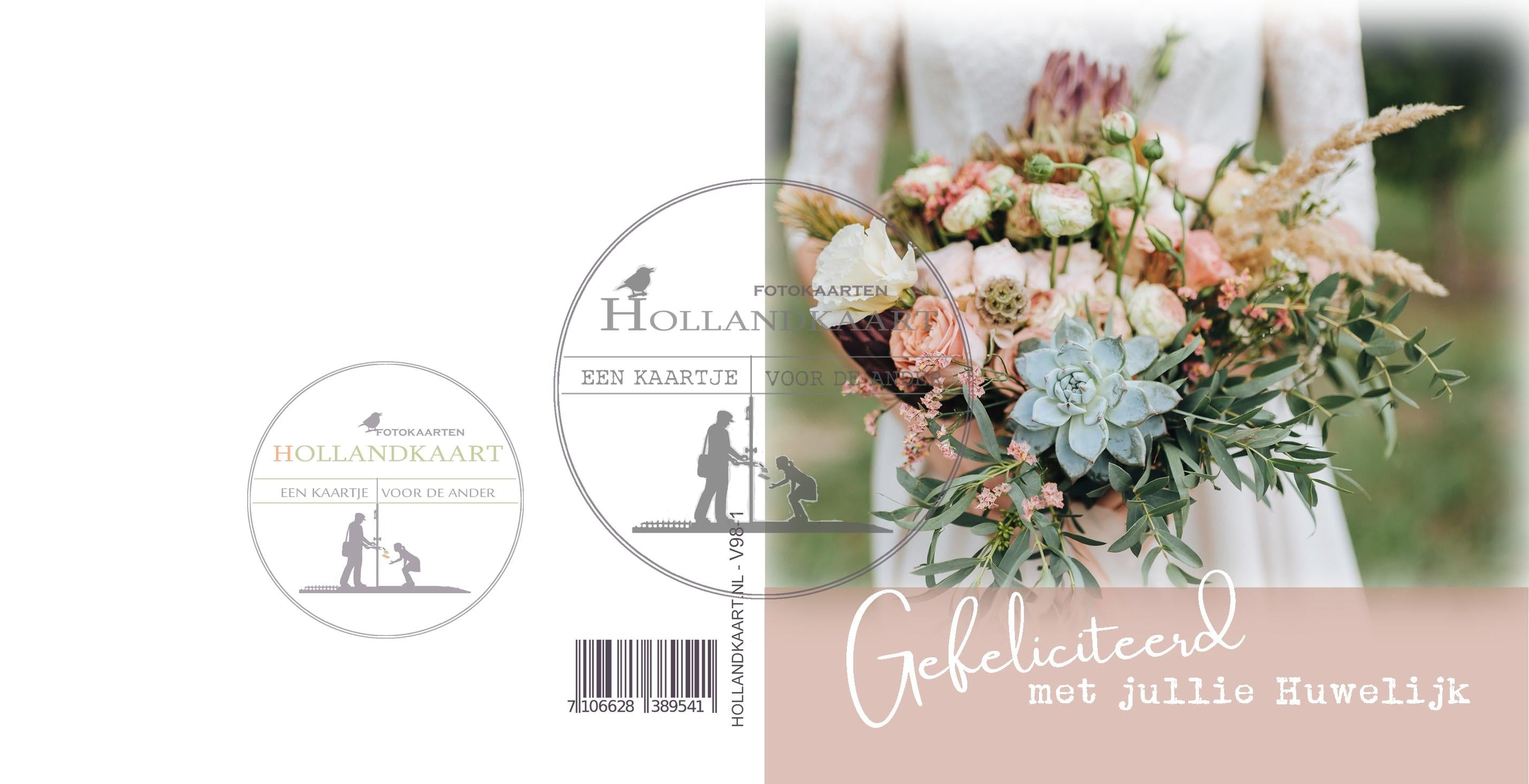 Mooie sfeervolle kaart met kraftenvelop voor Huwelijk.